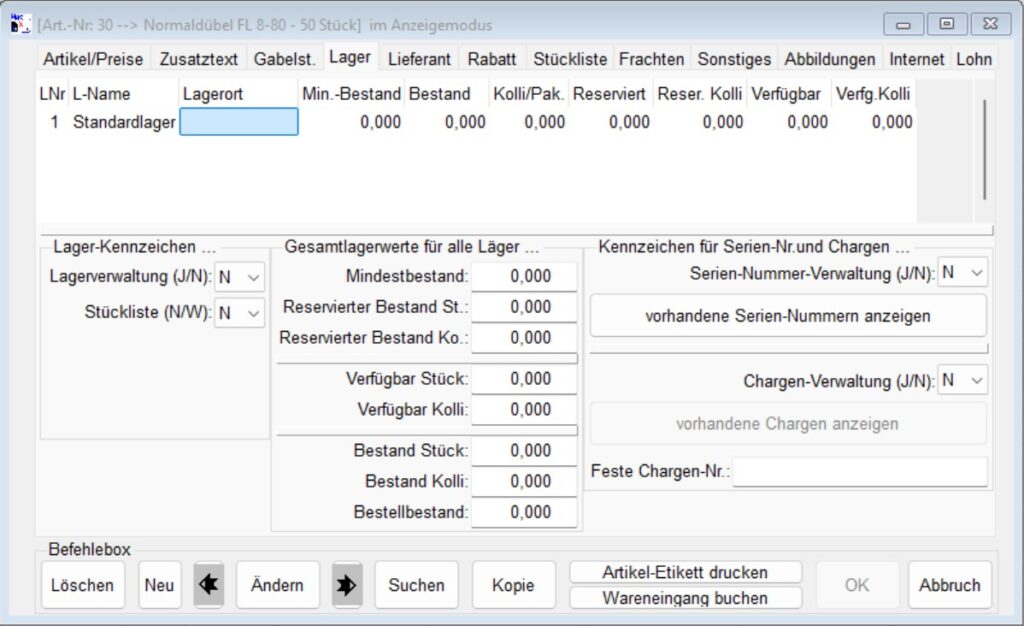 – Mehrlagerfähigkeit durch Auflistung der Bestände pro Lager sowie aller Lagerstätten insgesamt