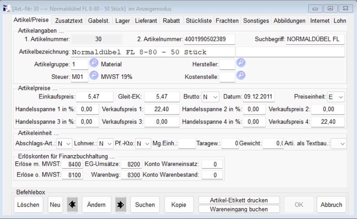 – Preis-Kalkulation autom. beim Wareneingang möglich