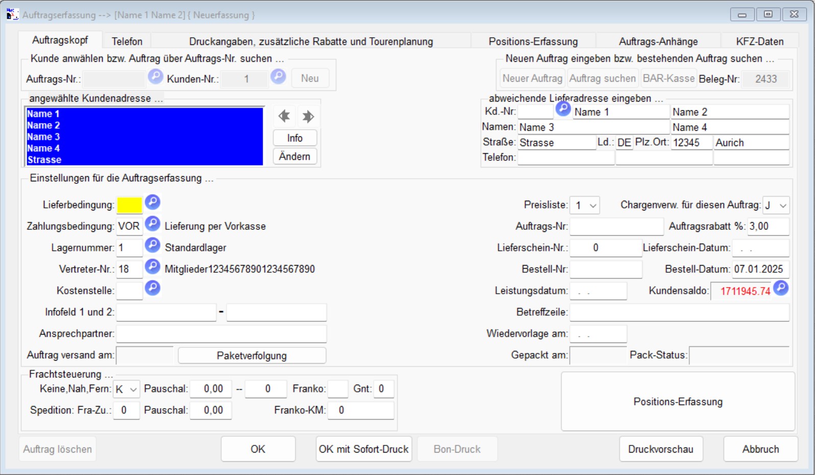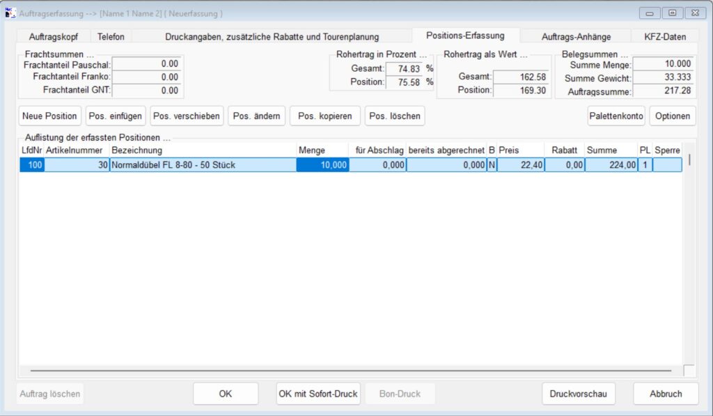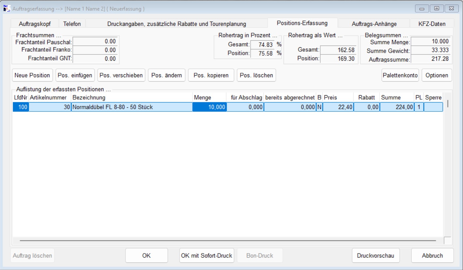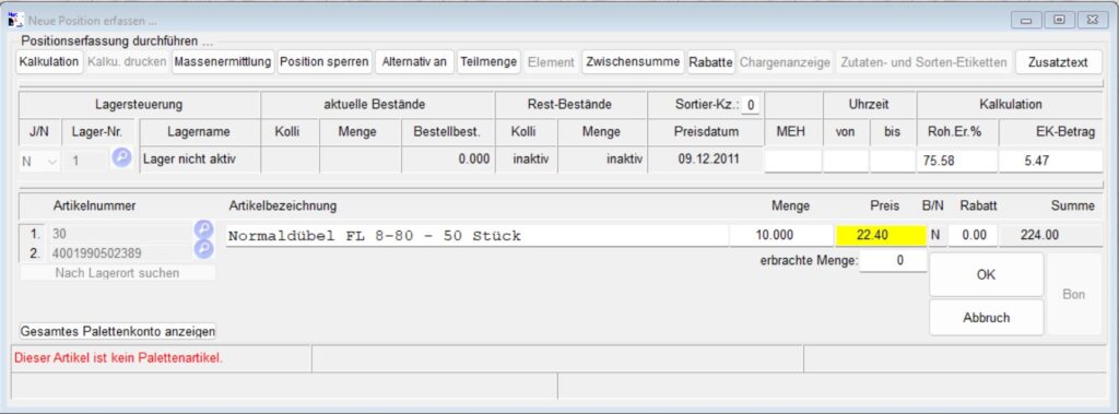 – Eingabe von Artikel- und Textpositionen in beliebiger Anzahl und Länge