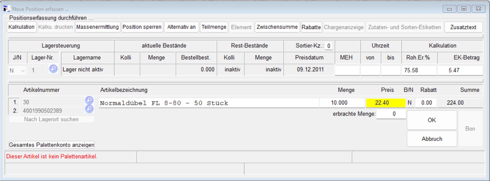 – Vorbereitete Artikelkalkulation kann geändert werden
