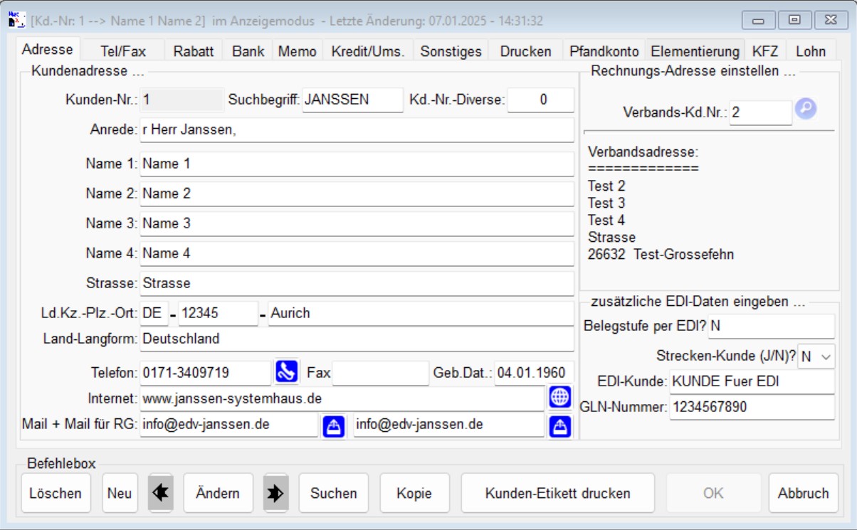 – Suchen über Kd.-Nr, Suchbegriff, Postleitzahl und Ort
