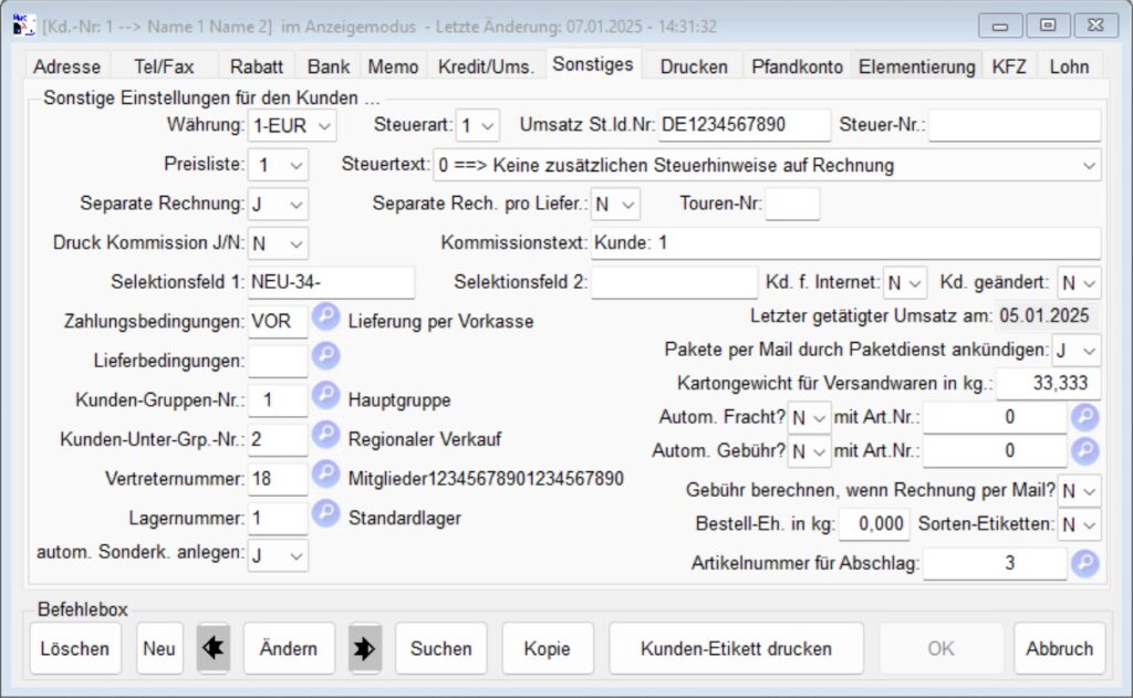 – Ändern der zugewiesenen Preisstufe, Zahlungstermine und Lieferbedingungen